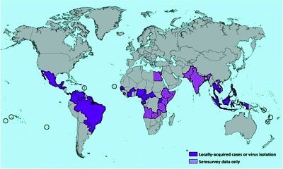 寨卡病毒于1947年被发现,然而多年来仅在非洲和南亚地区发现过散在人间病例。2007年,首次得到文件记载的寨卡病毒病疫情发生在太平洋。2013年以来,西太平洋、美洲和非洲报告发生了相关病例和疫情。由于蚊虫可以生活并且孳生的环境受城市化和全球化的影响出现扩大,因此可能会在全球发生寨卡病毒病大型城市疫情。